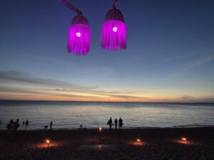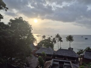 Eine vom Massentourismus unverdorbene Insel begrüßte mich. Ich wanderte einen Hügel hinauf zu einem Strand, wo ich nur auf eine andere Reisende traf. Am späten Nachmittag, der Himmel war bedeckt und eine leichte Brise kühlte, spazierte ich auf dem Watt zu einer Insel in den Sonnenuntergang. Per Rad erkundete ich einen anderen Strand, auch der war nur von ein paar Sonnenanbetern belegt. Gerade hatte ich mich an ein normales Dorfleben der Einheimischen und das entspanne Flair gewöhnt, musste ich schweren Herzens abreisen, da kein Schlafplatz auf der Insel mehr frei war.