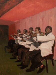 Die Ausstellung „United by Jazz“ hat buchstäblich Musik inne. Sie fragt danach, was Kunst und Jazz bis heute verbindet. Der Jazz aus den USA eroberte in den 1920er- und 1930er Jahren die Tanzsäle und Ballhäuser, Bars und Cafés, Varietés und Kinos in Europa. Nach dem Zweiten Weltkrieg bis in die 1950er Jahre war Jazz ein Synonym für intellektuelle kritische Praxis und Vielfalt. Bebop, Free Jazz und Abstraktion verkörperten idealtypisch den Modernismus und das westliche Freiheitsparadigma. So hörte der US-amerikanische Maler Jackson Pollock (1912 – 1956) tage- und nächtelang Jazz, während er an seinen bekannten „Drip-Paintings“ arbeitete. K. R. H. Sonderborg (1923 – 2008), der in der NS-Zeit als Swinging Boy verhaftet worden war, wurde einer der wichtigsten Maler des Informel in Deutschland und veranstaltete in Stuttgart gemeinsam mit Jazz-Musikern malerische Aktionen. Der King der Pop Art, Andy Warhol (1928 – 1987), entwarf Plattencover für das legendäre Label Blue Note Records.